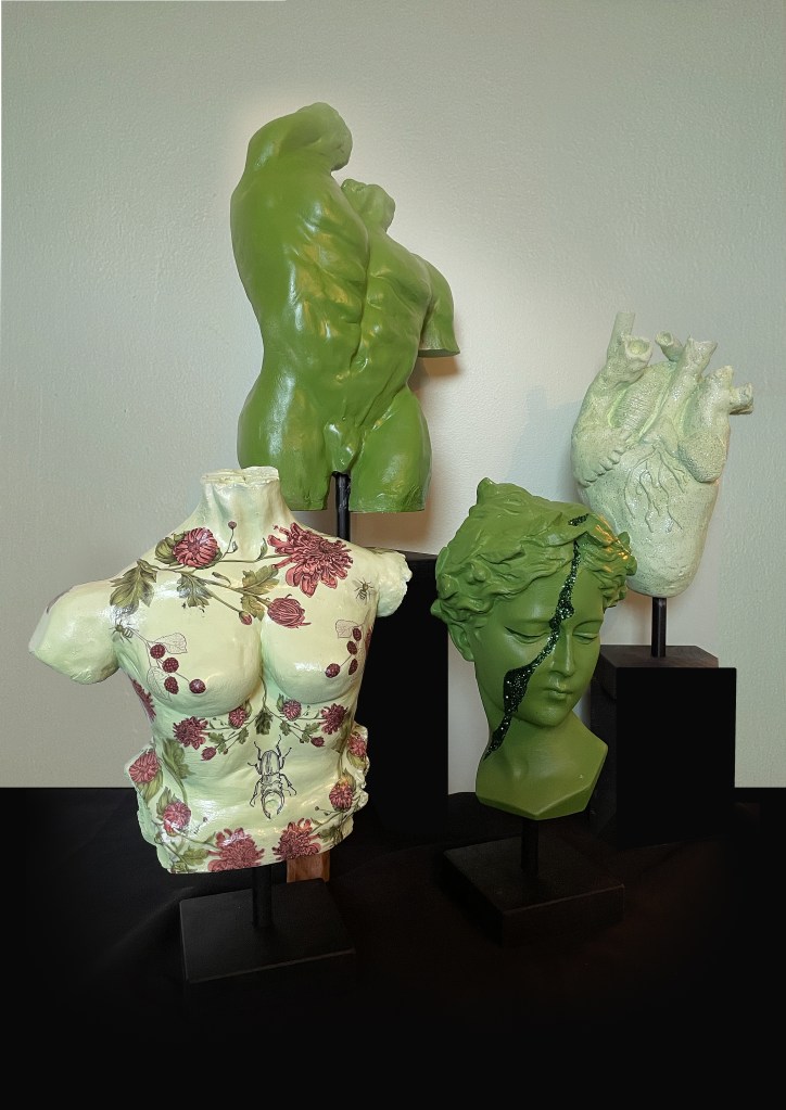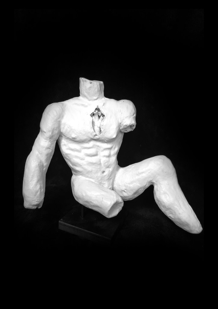 Pour un peu de poésie dans le quotidien, des statues décoratives modelées et sculptées en terre par la suite moulées et coulées en plâtre pour un rendu plus fin. La collection tourne autour du champ lexical des corps décharnés et de ses organes. Comme des écorchés vifs, ces corps viennent en quelques sortes montrer que c’est parfois dans nos fêlures et nos blessures que l’on laisse jaillirent nos lumières et nos moi intérieurs.